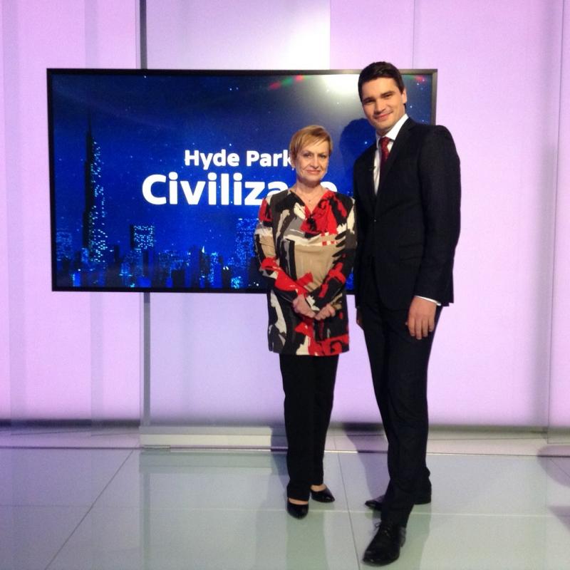 Když začal rozhovor, hned mě překvapila odpovědí na pozdrav slovy: "Pro mě je velkou ctí, že mohu být zde u Vás ve vašem pořadu Hyde Park Civilizace." A přidala gratulaci k Ceně Václava Havla. Hrozně jsem se červenal a těžko hledal slova.